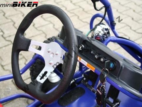 je elektrický startér, kterým buginu nastartujete a vypnete, ale také přední osvětlení a nožní brzda. Buginy jsou dvoumístné s pohonem zadních kol. Motor je umístěn v zadu za sedačkami. Nastavitelná tuhost předního i zadního odpružení.