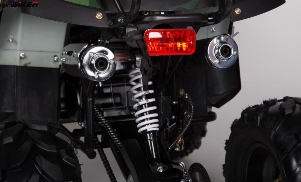 je nový upravený model, čtyřkolka je vhodná pro uživatele s výškou postavy cca od 130cm do 170cm. Dětská čtyřkolka Hummer 125cc má 2 výfuky, velká kola 8 palců, nový typ pneu, robustní přední nárazník, plastové lemy blatníků, zesílený rám a zadní kyvná vidlice, možnost nastavení polohy předního odpružení, kryt řetězu, elektrický startér, přední a zadní (nožní) kotoučové hydraulické brzdy, parkovací brzda, přední LED světla s čirou optikou, přední a zadní nosič, výtrhová pojistka. Nastavitelná tuhost odpružení (měkčí než ostatní modely). Čtyřkolka je automatická, řadí se pouze vpřed a vzad, má připravený konektor pro možnost přidání dálkového ovládání start/stop, které můžete zakoupit na našich stránkách (kód 5030742) + sportovní vzduchový filtr, sportovní výfuk, lemy blatníků, nožní brzda