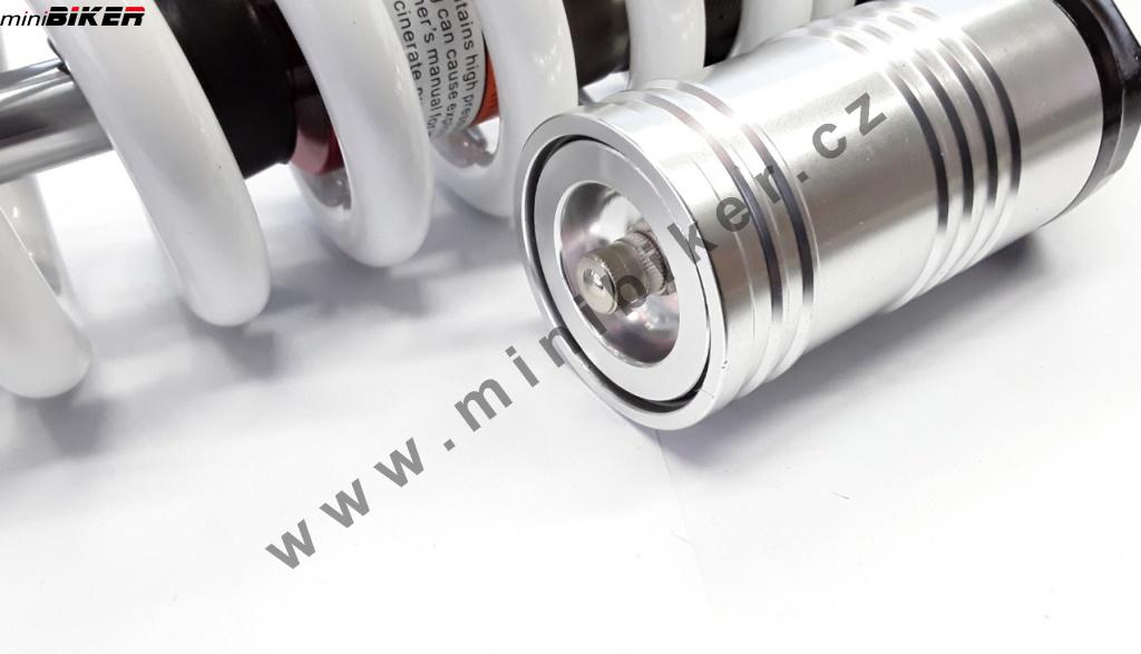 Tlumič Pitbike 150cc a 250cc Stavitelná tuhost, rozteč děr (střed/střed) 305mm, síla pružiny 12mm, celkový průměr v nejširším bodě 71mm + nádobka