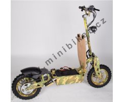Elektrická koloběžka 1000 W 48V, nosnost 120 kg, dojezd 20 km, rychlost 35 km/h, nastavitelná tuhost odpružení, volnoběžka